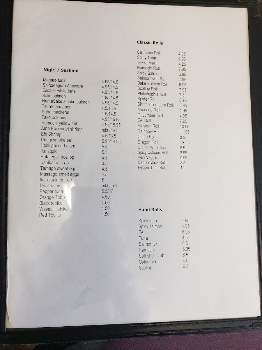 2 tuna, 2 salmon, 2 white fish, 2 shrimp nigiri and a choice from california roll, shrimp tempura roll, spicy tuna roll, spicy salmon roll, avocado roll, salmon roll, or tuna roll