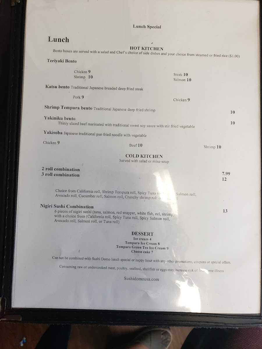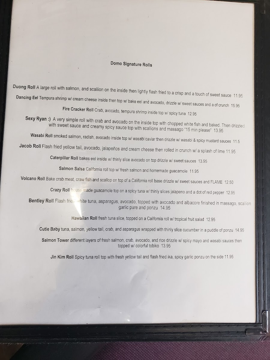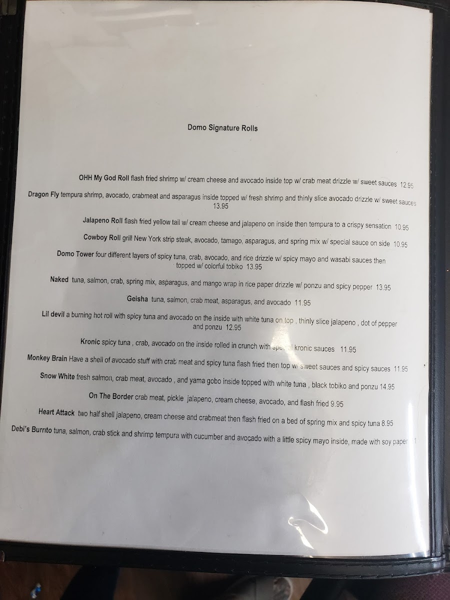 At Sushi Domo, you're in for a treat with a diverse menu that highlights the freshest ingredients and the art of sushi-making. Whether you're craving the perfect sashimi, creative rolls, or classic nigiri, the offerings here are designed to please every palate. From the delicate flavors of the sushi to the flavorful appetizers, there's something for everyone. The Sushi Domo Menu brings together traditional Japanese dishes with a modern twist, offering everything from bento boxes to savory soups, all prepared with care and expertise. With each dish made to order, you can expect quality and freshness in every bite, making it the perfect spot for sushi lovers in Arlington.